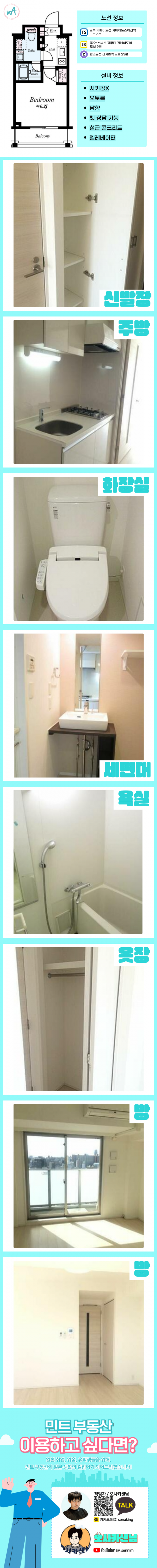 [오사카][MDOS240079] 1K / 월세 86,000엔 / 관리비 5,000엔 / 시키킹X