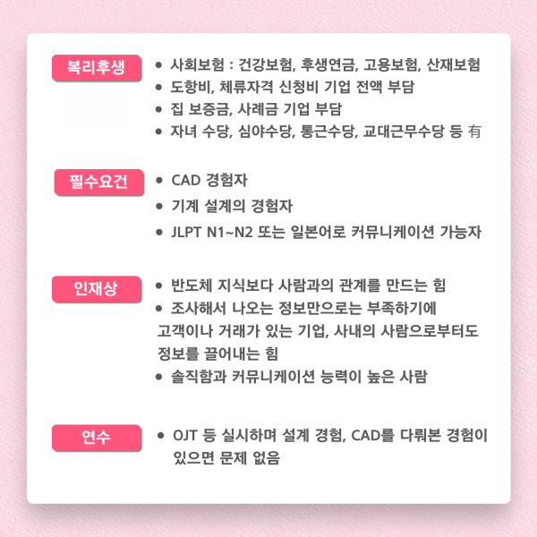 (n-41) 기계설계 엔지니어 / 정사원 작성자 정보 민밍짱쪽지보내기 메일보내기 자기소개 아이디로 검색 전체게시물쪽지보내기 메일보내기 자기소개 아이디로 검색 전체게시물 작성 작성일 2024.07.19 11:28 컨텐츠 정보 7,181 조회 0 추천 목록 답글 본문 (n-41) 기계설계 엔지니어 / 정사원 0 추천 관련자료 이전 (n-42) 퍼솔크로스테크놀로지 / 정사원 작성일 2024.08.01 13:14 다음 (n-40) 전기설계 엔지니어 / 정사원 작성일 2024.07.19 11:27 댓글 0 등록된 댓글이 없습니다. Select File Upload File 목록 답글