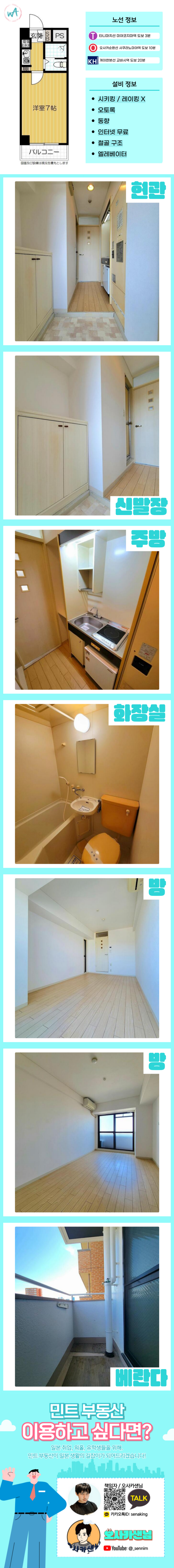 [오사카][MDOS240074] 1K / 월세 43,000엔 / 관리비 8,000엔 / 시키킹,레이킹X
