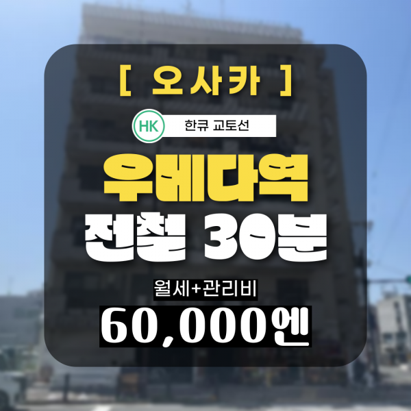 [오사카][MDOS240082] 1K / 월세 53,000엔 / 관리비 7,000엔 / 시키킹X